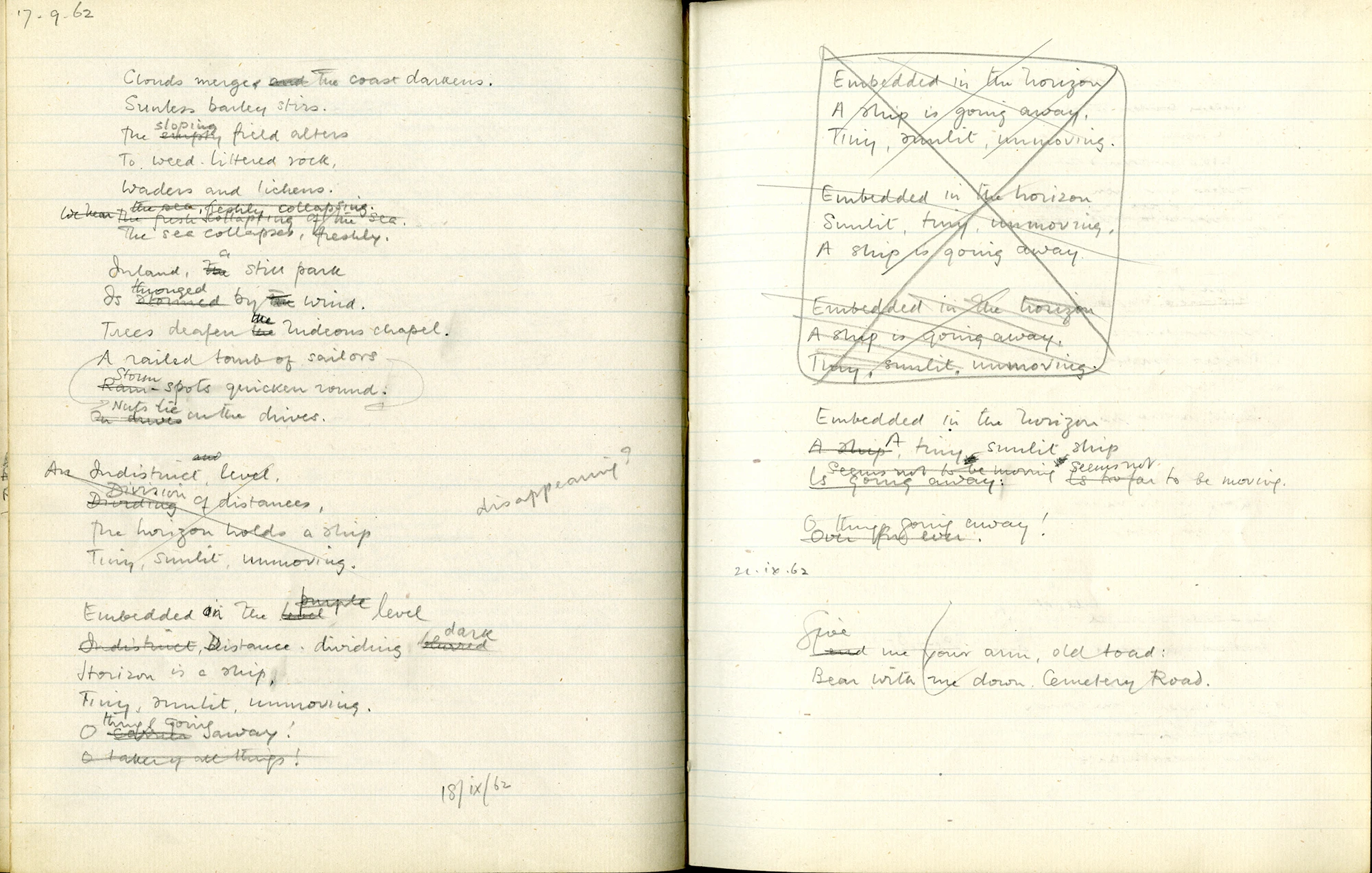 As Jean Hartley recalls: ‘He said that he had always lived at the top of buildings and that it pleased him to do so. It was the perfect place for a man of his temperament, one who loved to look out at the world but who wanted complete control over who could look back at him. His green-fringed eyrie provided the ideal ambience for writing and was obviously the starting point for poems such as ‘Toads Revisited’, ‘The Trees’, ‘High Windows’, ‘Sad Steps’, ‘Broadcast’ and ‘Vers de Société’. The poems that comprise The Whitsun Weddings and High Windows volumes were written here, as were many poems that would have been included in a last collection had there been one’.